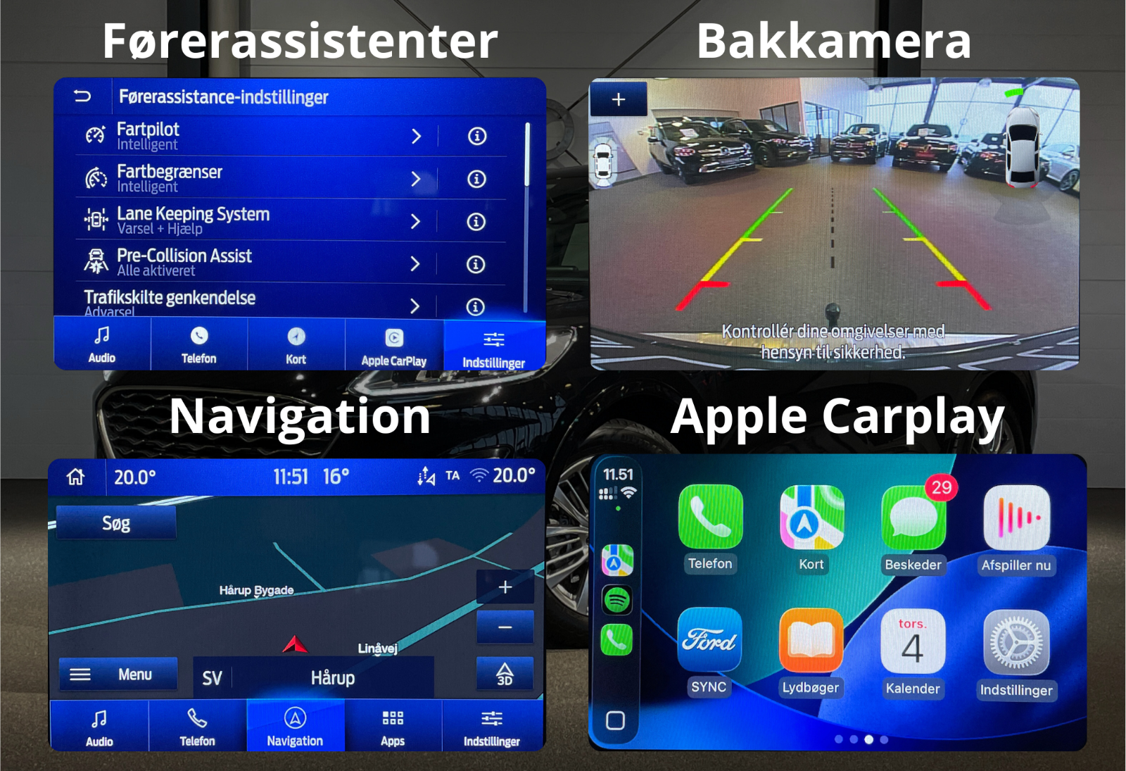 ◾️ Parkeringssensorer for og bag (m/visuel visning i display)
